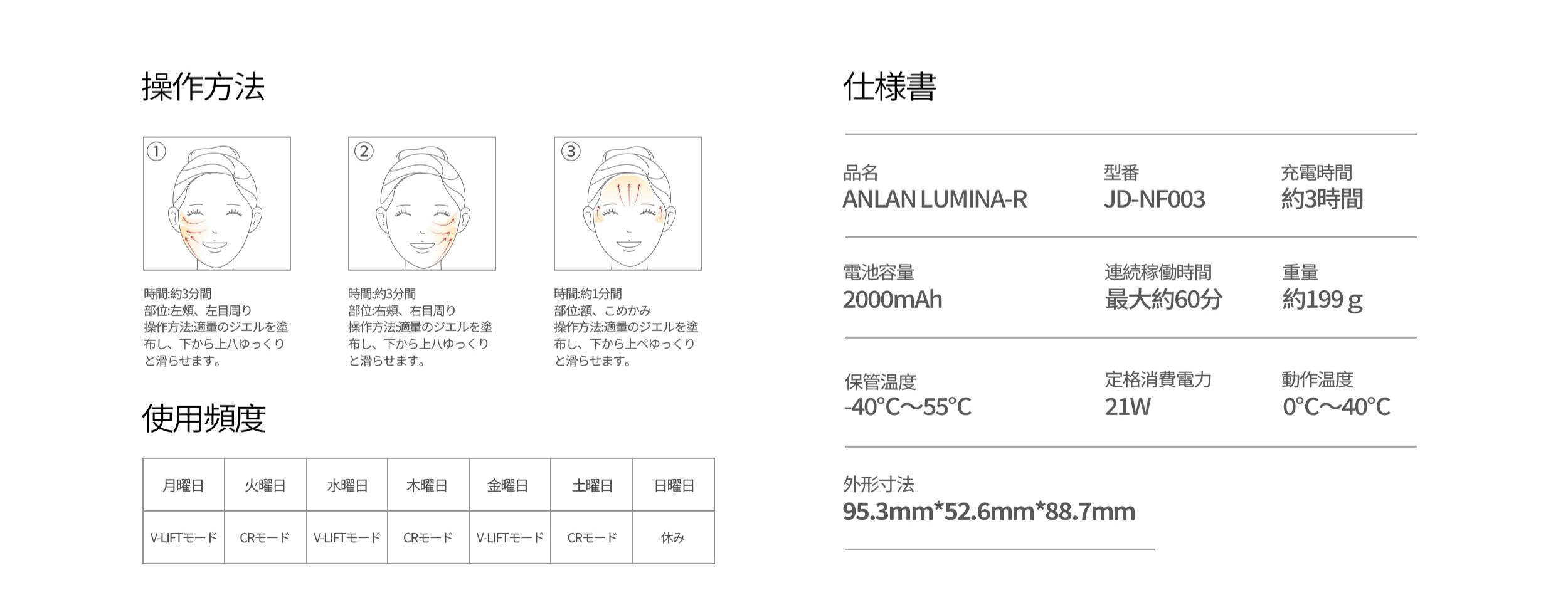 1回あたり約6分。肌の同じ部分に長時間停留させず、動かしながら使用してください (1部位3秒以内が目安)。